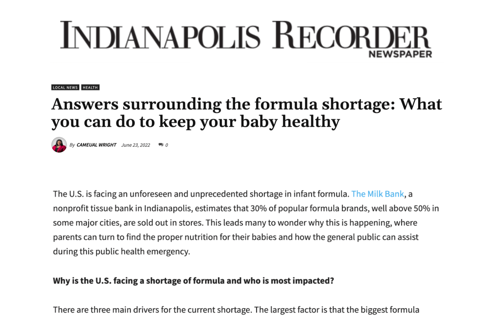 “Excellent work around the infant formula shortage issue. Thanks for jumping headfirst into an important topic and getting us into a good spot with our positioning on this very important matter.” – Joe Kelley, Manager Media Relations at CareSource
