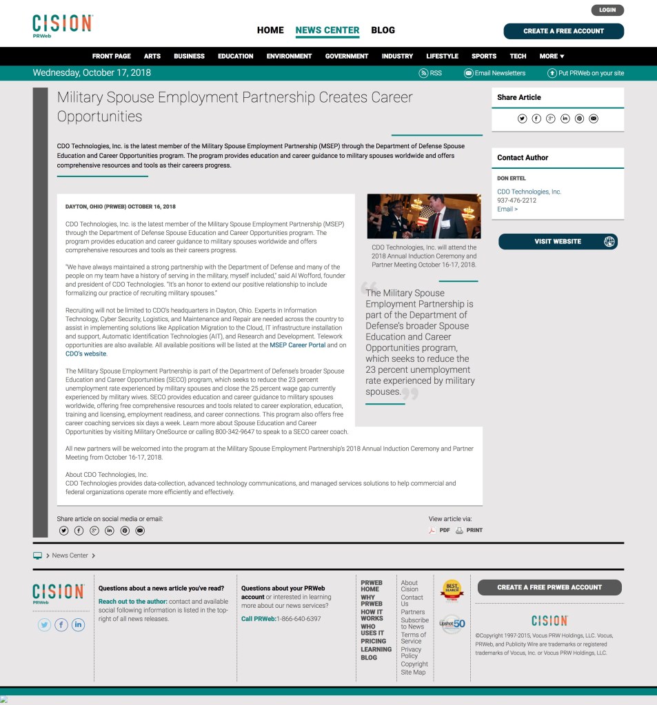 The partnership between CDO Technologies and Nova Creative resulted in a significant increase in media coverage, including a feature in the Dayton Business Journal highlighting CDO Technologies’ partnership with the Air Force to commercialize the technology. The new communication efforts also resulted in a significant increase in website traffic and lead generation. By leveraging their company milestones as newsworthy announcements, CDO Technologies was able to better engage with their prospective clients while improving their Search Engine Optimization. Overall, the successful communication strategy helped to position CDO Technologies as a leader in their industry and generated new business opportunities for the company.
