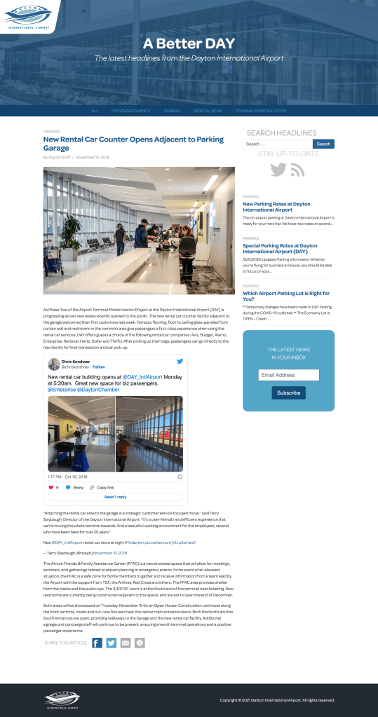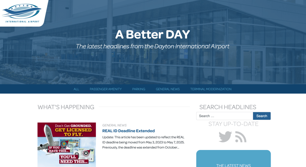 Objective: Launch a news website for the Dayton International Airport to improve communication with passengers, employees, and media outlets
